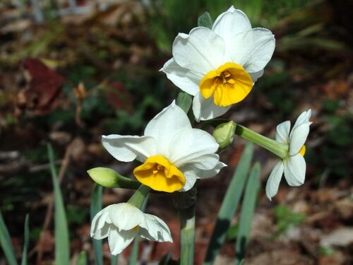 風はあったけどぽかぽかと暖かい日になりました。でも,週末から寒さがもっと厳しくなるそうです。本格的な冬がもうすぐやってきます。冷たい風のあまり当たらない庭の片隅では日本水仙が咲き始めています。 大きな木蓮の葉陰になっていた場所です。花の数は…